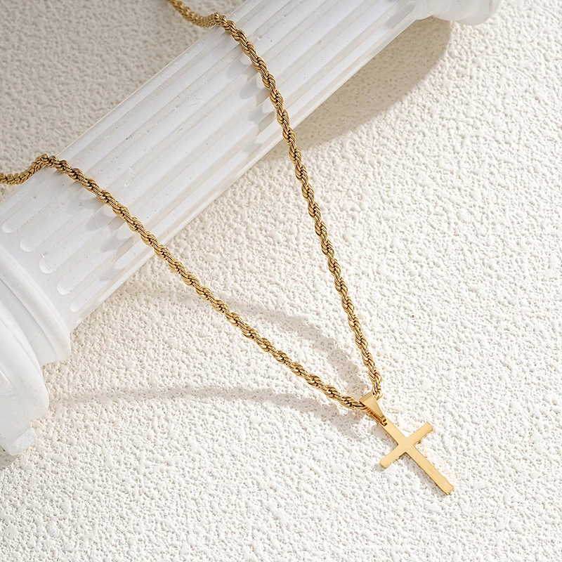 Add a touch of minimalist elegance with this Stainless Steel Cross Pendant Necklace for men and women. Crafted from durable stainless steel with a sleek gold finish, it combines style and longevity. The timeless cross design makes it a meaningful accessory suitable for casual, formal, or spiritual wear. Lightweight and comfortable, it can be worn daily or layered with other necklaces for a fashionable look. Perfect as a thoughtful gift for friends, family, or loved ones. Ideal for birthdays, holidays, or special occasions, this necklace blends contemporary style with classic symbolism. Its unisex design ensures it complements any wardrobe. Durable, stylish, and versatile, it’s a must-have accessory for everyday wear. Make a statement with this elegant and meaningful piece of jewelry.
